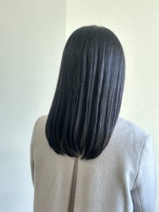 縮毛矯正をかけているお客様 2ヶ月に一度髪質改善トリートメントとリンゴ幹細胞トリートメントをされているので 髪は艶々です。